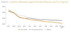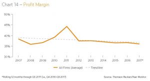 O segundo ponto, diz respeito à tendência na diminuição das margens de lucros, a diminuição da eficiência na realização na cobrança dos honorários, associadas ao pequeno, porem estável crescimento nos custos (também citados no mesmo relatório, conforme gráficos abaixo):
