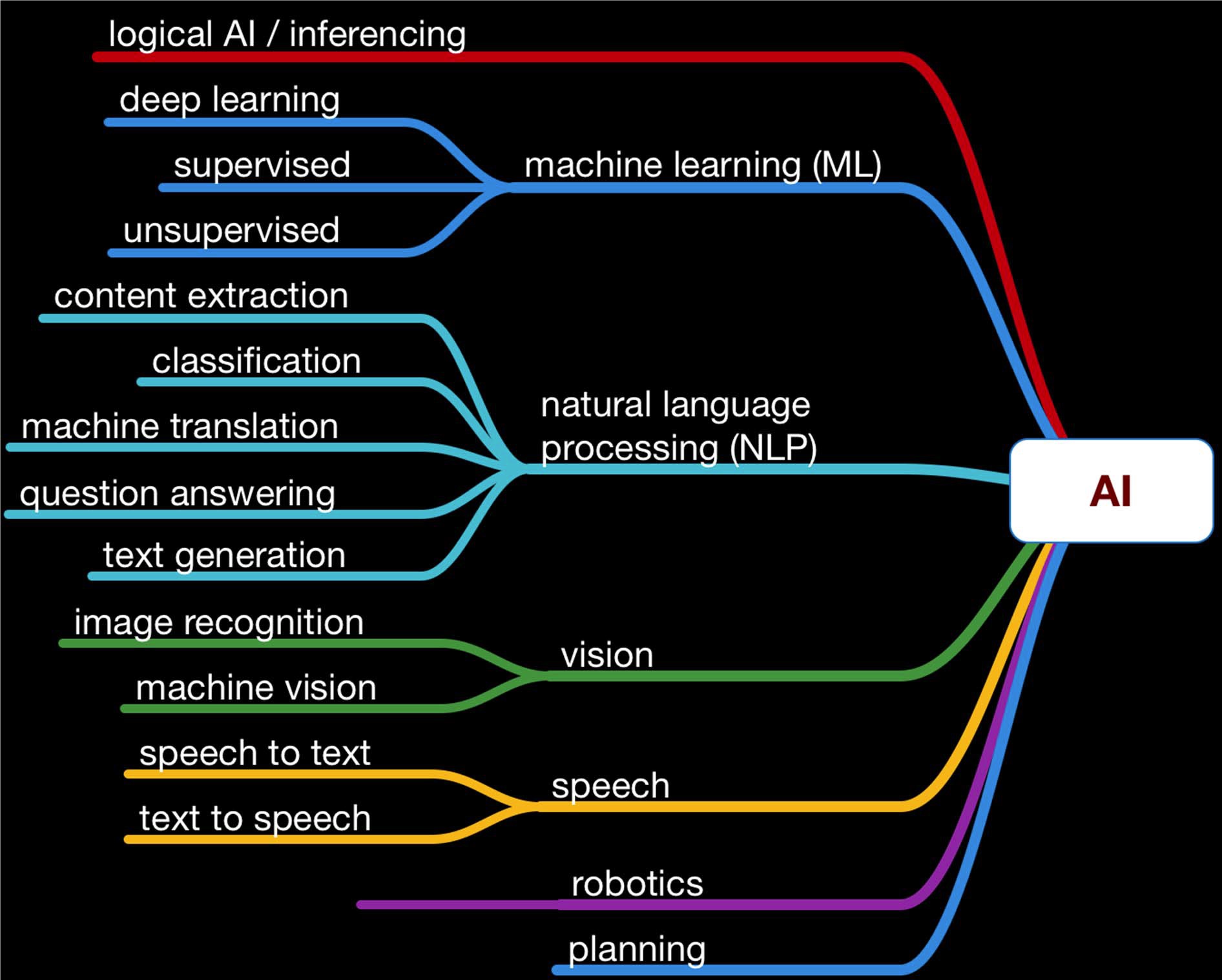 Ao longo desses 25 anos, várias frentes paralelas de desenvolvedores foram se especializando em reconhecimento de imagens e faces, entendimento e processamento da linguagem natural humana, robótica, aprendizado computacional (“machine learning”), lógica não estruturada (linguagem) e redes neurais de computação que todas juntas formam a Inteligência artificial.